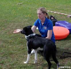 Mikke och bordercollien övervakar de andras framsteg. |