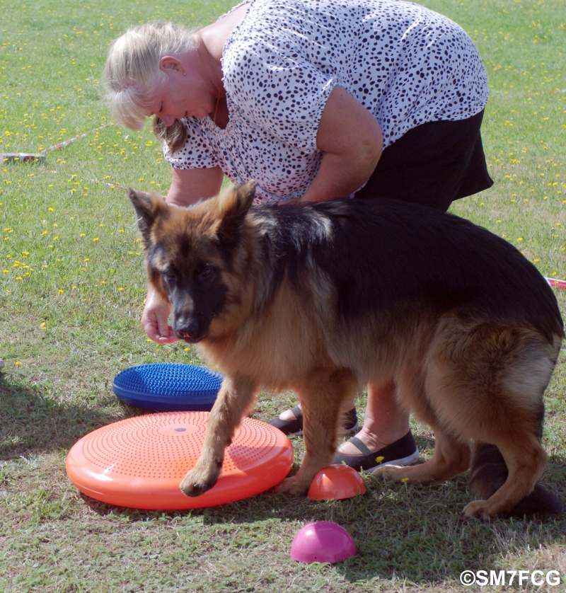 Efter Emmas föreläsning fick deltagarna själva testa att träna sina hundars balans. |