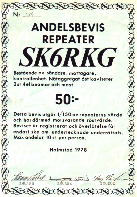 Andelsbevis i repeater SK6RKG |